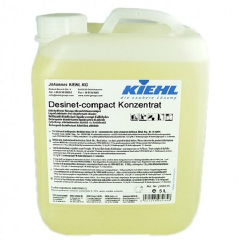 Desinet-compact concentrat este un detergent dezinfectant registrat conf. listei VAH şi IHO pentru dezinfectarea suprafeţelor. Acest produs nu conţine aldehide, fenoli, substanţe active metalo-organice. În timpul prelucrării Desinet-compact concentrat are un miros neutru, cu proprietăţi active de curăţare, şi se uscă fără urme de şters. Are acţiune contra bacteriilor grampositive şi gramnegative, ciupercilor, salmonelelor, listerinelor şi viruşilor capsulaţi (acţiune "virucidă limitată" incl. HIV, HBV, HCV). Pentru acest produs există un certificat de compatibilitate pentru domeniul alimentar.Compoziţie