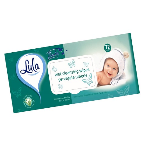 LULA Șervețele umede cu adaos de Aloe Vera, cu capac, 72 bucăți, moi și delicate, curăță bine pielea copilului, lăsând-o netedă și hidratată, pentru piele sensibilă predispusă la alergii.