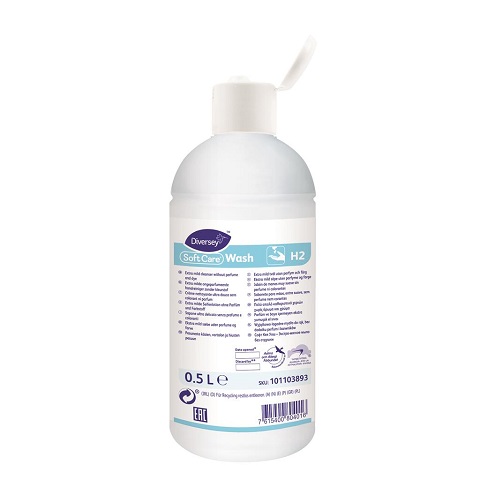 Săpun lichid Soft Care Wash H2-0.5L este un lichid de spălare pentru mâini, hipoalergenic. A fost dezvoltat special pentru pielea sensibilă. Nu conține iritanți, alergeni, parfum și coloranți. Acest produs certificat ecologic este potrivit pentru utilizare în toate domeniile, dar mai ales în domeniul sănătății, al agrementului și al serviciilor alimentare.